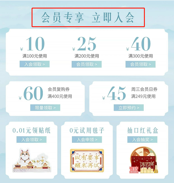 除此之外,瑾栩也加強了視覺觸點,引導(dǎo)消費者入會加深流量價值。強化品牌IP特點,利用和競品與眾不同的風(fēng)格,增加消費者對品牌IP的印象。