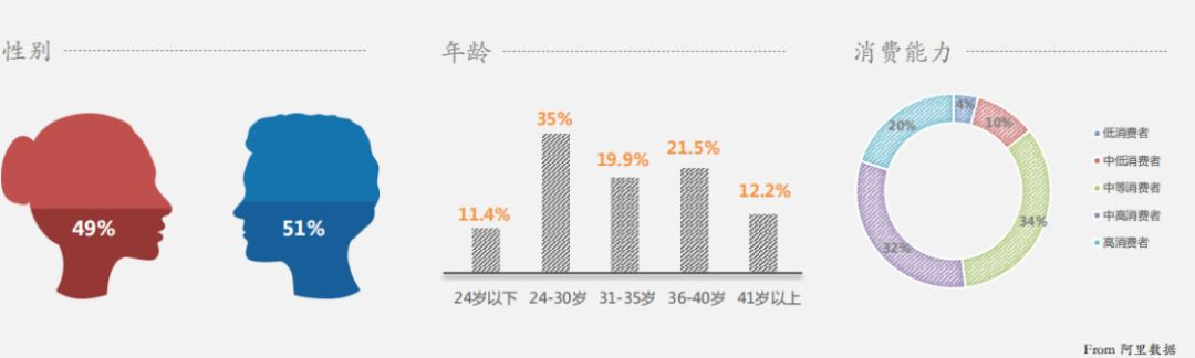 從阿里數(shù)據(jù)的分析內(nèi)容可看出,如圖1所示,在中國旅游客群中,男性以51%的占比,略高于女性。以24-40歲的年輕人群為主,占比高達(dá)76.4%,且85.7%的客群具有中高級消費能力。