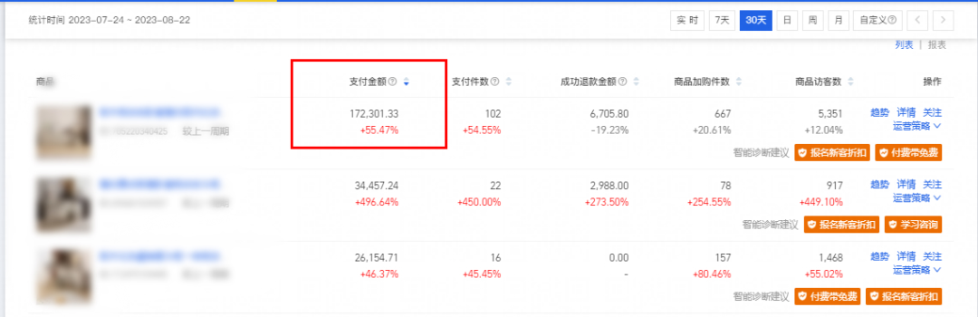 針對同行競店以及競店相同競品進(jìn)行分析,找出競店周期引流詞和成交轉(zhuǎn)化詞,對比市場搜索趨勢詞進(jìn)行添加,每一個(gè)周期對比做篩選,關(guān)鍵詞引流訪客周期突破1000,推廣引流下單金額7萬+。”寧思告訴我們。