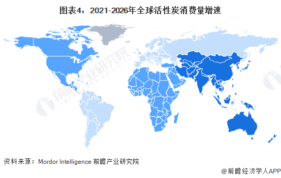 就我國情況來看,隨著工業(yè)部門對水的需求不斷增加,以及政府關(guān)于防止水污染和控制行動計(jì)劃的法規(guī)不斷變化,都增加了我國對水處理活性炭的需求;同時,近年來我國的食品飲料以及工業(yè)行業(yè)的市場規(guī)模不斷擴(kuò)大,也帶動了活性炭需求量的不斷增長。根據(jù)Mordor Intelligence數(shù)據(jù)預(yù)測,預(yù)計(jì)在2021-2026年間,亞太地區(qū)將保持全球最高的的活性炭消費(fèi)量增速,其中我國活性炭消費(fèi)量增速將成為亞太地區(qū)整體高增的主要推動力。