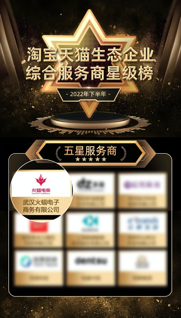 2022年下半年淘寶天貓生態(tài)企業(yè)評級公布,火蝠電商再次榮獲五星服務(wù)商