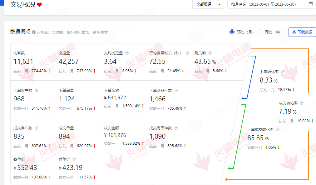 借勢(shì)618大促,成功“找對(duì)人,說(shuō)對(duì)話”,整個(gè)項(xiàng)目從策劃到落地,短短一個(gè)月,團(tuán)隊(duì)就高效完成了店鋪上線、頁(yè)面裝修、產(chǎn)品上架、推廣引流等相關(guān)工作,幫助品牌方京東店鋪銷(xiāo)量爆發(fā)。數(shù)據(jù)顯示,新開(kāi)奶粉店鋪僅上線一個(gè)月,銷(xiāo)量突破46萬(wàn),訪客增長(zhǎng)155.95%,整店數(shù)據(jù)取得持續(xù)增長(zhǎng)。本次呈現(xiàn)的京東店鋪奶粉類(lèi)目案例,不僅獲得了品牌主秦浩(化名)的高度贊許,也再次強(qiáng)有力地證明了火蝠電商在多電商平臺(tái)運(yùn)營(yíng)和數(shù)字化營(yíng)銷(xiāo)等方面的綜合實(shí)力。