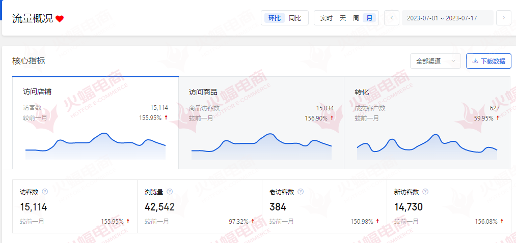 ▲店鋪7月流量數(shù)據(jù)。圖火蝠電商。